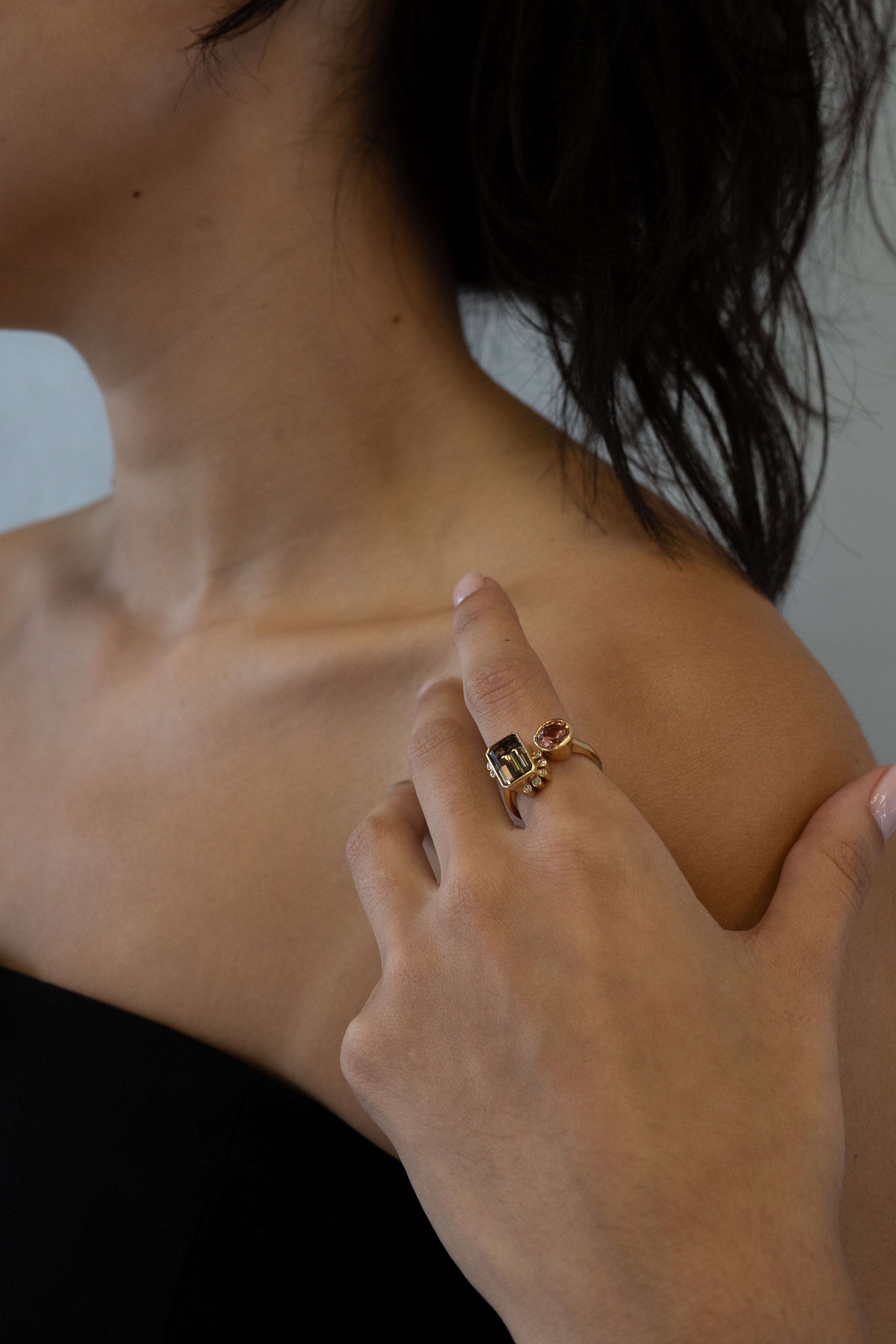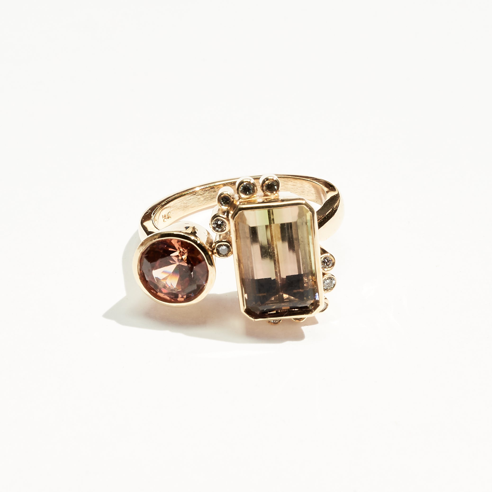 Center Stone: Bi-color Tourmaline & Malaysian Garnet